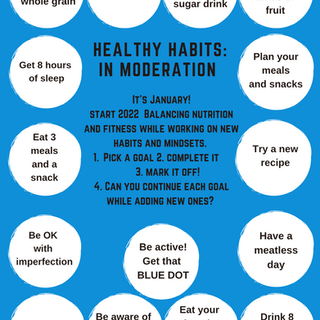 Start 2022 making and keeping new, or new again, healthy habits! Health incompasses your physical, nutritional and mental self. Make 2022 about enjoying your life in moderation!